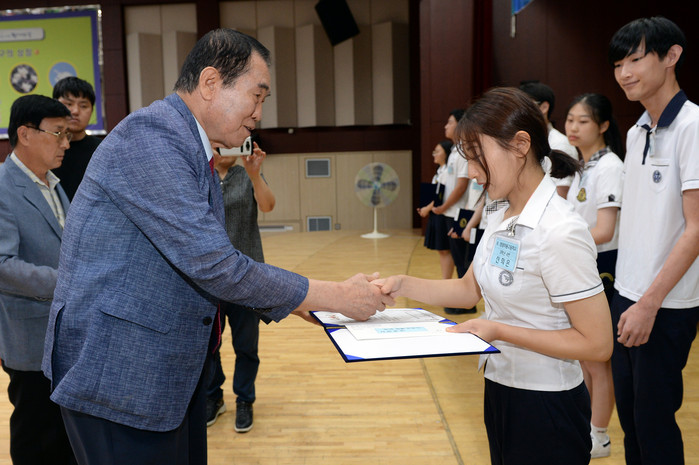이날 장학금을 수여한 학생은 초등학생 17명, 중학생 11명, 고등학생 9명 등 총 37명으로 각 학교에서 학교장의 추천을 받아 선정됐으며 초등학생에게는 각 30만원, 중‧고등학생에게는 각 40만원이 전달됐다.