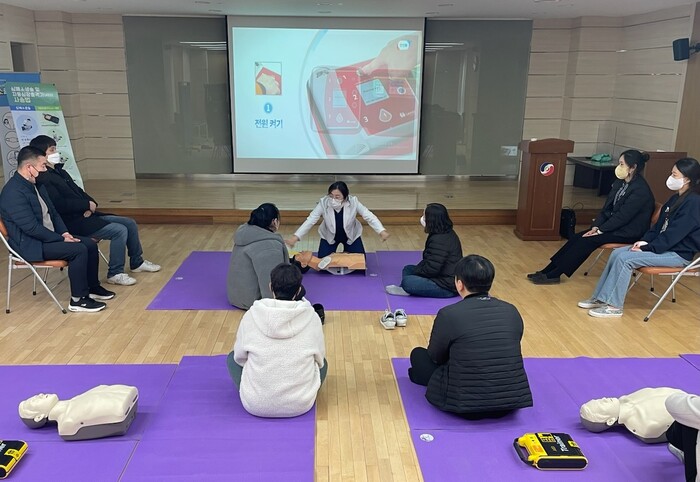 교육은 종합민원과 직원 30여명이 참여한 가운데 골든타임의 중요성, 응급상황 발생 시 빠른 대처 요령, 올바른 심폐소생술 방법, 자동심장충격기 사용 방법 등 이론교육에 이어 마네킹과 자동심장충격기를 활용한 실습 교육으로 진행됐다.