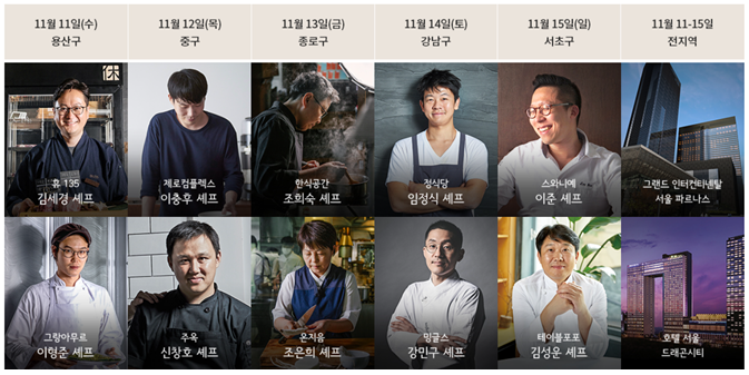 한편, ‘서울 미식주간’이 본격적으로 시작되기 이전인 지난 5일부터 오는 15일까지 순차적으로 코로나 극복을 위해 애쓰고 있는 중구 보건소와 신당 종합사회복지관 등 약 700명에게 위로가 되는 음식을 맛볼 수 있는 기회를 제공할 예정이다.