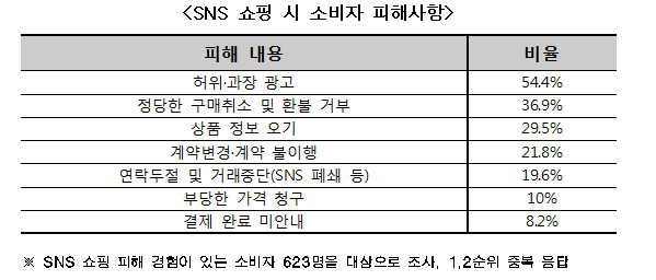 다시 말해, SNS에서 판매자의 허위·과장 광고를 보고 상품을 구매했으나 실제 배송된 상품이 광고와 다른 경우가 많았고, 이에 구매취소를 요청했으나 판매자가 이를 거부하며 소비자들이 피해를 입은 경우다.