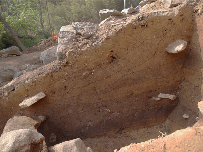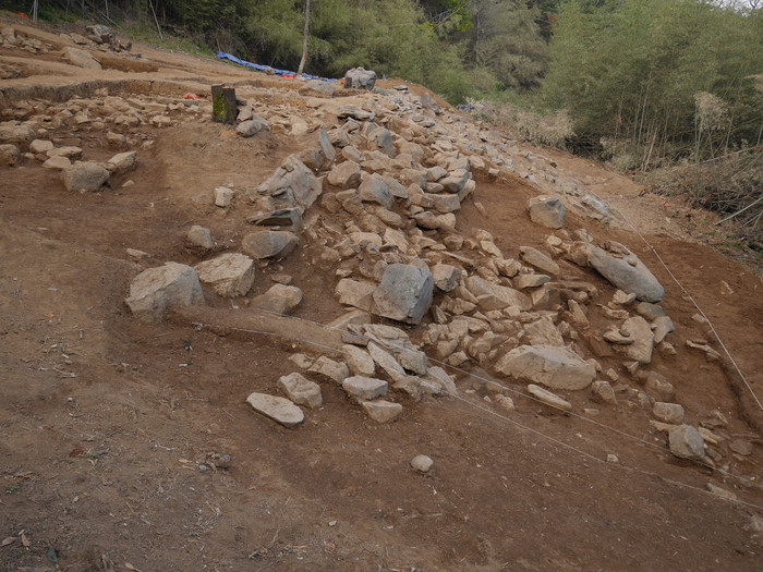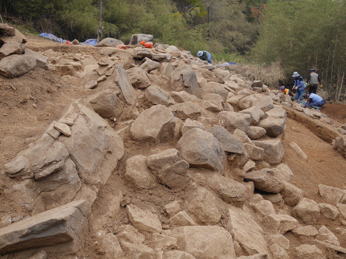 ▲남원 교룡산성 군기고터 발굴(축대 축조 상태) |