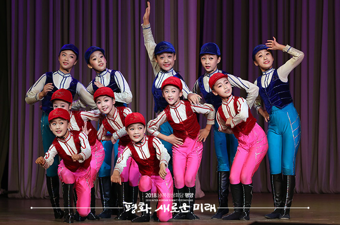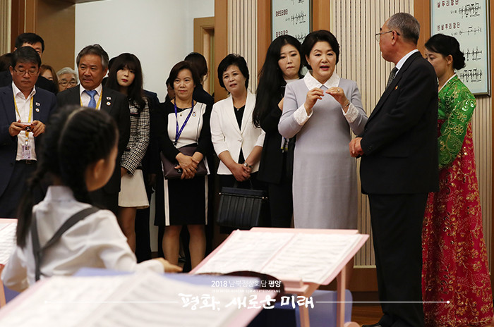 ▲19일 오전 평양 만경대 학생소년궁전에서 학생들이 문재인 대통령 부인 김정숙 여사를 비롯한 남북정상회담 특별 수행원들을 위해 공연하고 있다.(사진=평양사진공동취재단) |