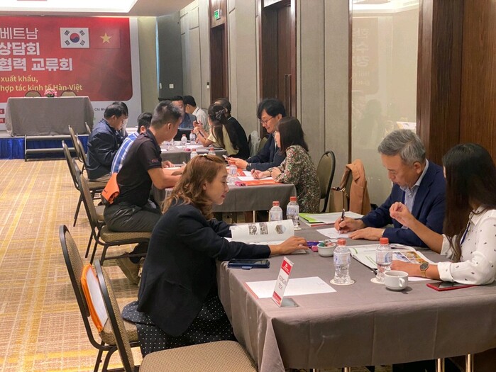 ▲ 창원특례시 베트남 무역사절단이 현지 바이어와 수출상담회를 진행하고 있다. 창원시 제공 |