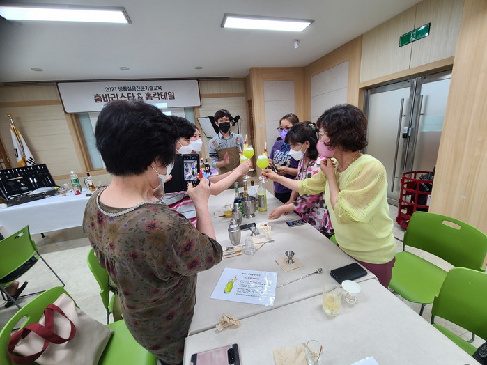 [로컬세계 이창재 기자]경북 영양군은 지난 6일부터 한국생활개선영양군연합회 회원 및 농촌여성들을 대상으로 홈텐딩 칵테일교육(생활실용전문기술교육)을 2회에 걸쳐 농업기술센터 생활자원실습장에서 진행하고 있다.
