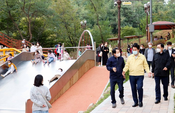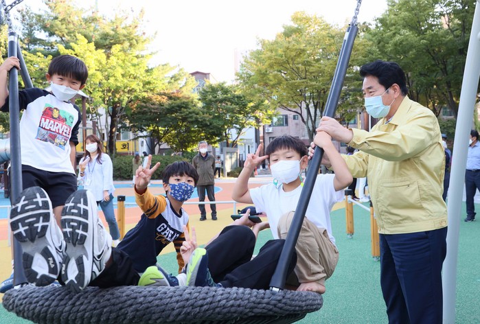 시는 도비 10억원을 투입해 대형미끄럼틀, 밧줄건너기 등 어린이 놀이공간을 조성하고, 안전사고 예방을 위한 CCTV 1개와 볼라드 조명 64개를 설치했다.