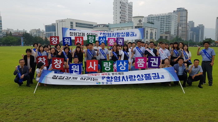 시는 창원시 소상공인연합회, BNK경남은행 창원시청지점과 함께 지난 20일부터 지역 소상공인 매출증대 및 골목상권 활성화를 위하여 100억 규모로 발행된 창원사랑상품권을 보다 많은 시민들에게 알리고자 카드섹션과 현수막 등으로 캠페인 활동을 했다.