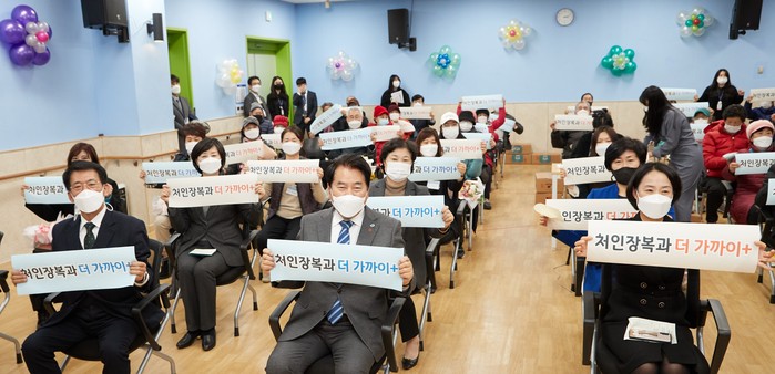 아울러 사회자가 “장애인의 삶에”, “우리동네 이웃과”, “새로운 변화에”라고 선창하면 참석자 모두가 ‘더 가까이’라고 쓰인 피켓을 들고 흔드는 퍼포먼스를 진행했다.
