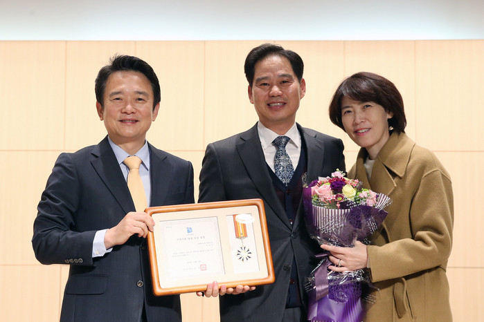 | ▲24일 오전 경기도경제과학진흥원 광교홀에서 열린 "11월 기우회"에서 남경필 경기도지사가 수상자들과 기념촬영을 하고 있다. |