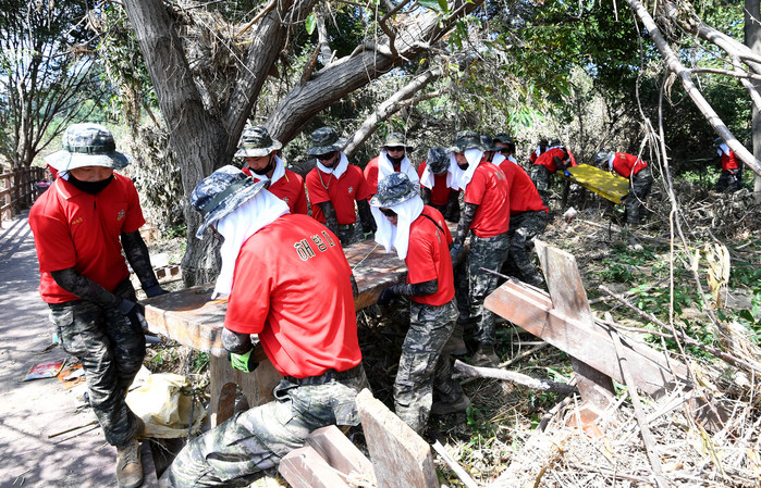 해병대 장병들은 피해 상황 등을 고려, 안전을 확보한 가운데 탄력적으로 작업을 진행하고 있으며, 코로나19 방역을 위해 작업 간 마스크 착용, 인원 접촉 최소화, 개인소독 등 방역지침도 철저히 준수하고 있다.