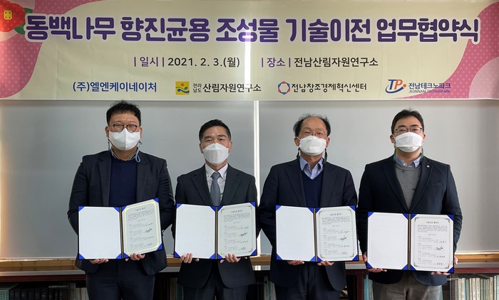[로컬세계 한세혁 기자]전라남도산림자원연구소는 지난 3일 여수 소재 ㈜엘엔케이네이처(대표 김광진)에 ‘동백나무 항진균용 조성물’ 기술을 이전했다고 4일 밝혔다.