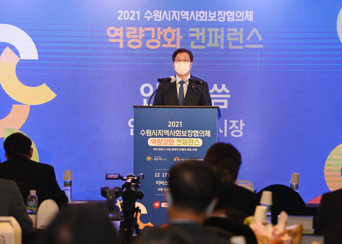 수원시는 17일 오후 2시 이비스 앰배서더 수원 니스홀 6층에서 ‘위드코로나 시대, 변화의 흐름과 대응 과제’를 주제로 ‘2021년 수원시·동 지역사회보장협의체 역량강화 컨퍼런스’를 열었다.