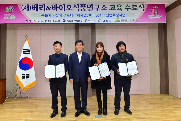 [로컬세계 김경락 기자]전북 고창군이 운영하는 (재)베리&바이오식품연구소(약칭, 고창식품연구소, 이사장 박우정 고창군수)가 지난 11일 교육과정 통합 수료식을 개최했다고 12일 밝혔다.