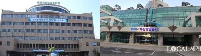 ▲부산해양수산청사(왼쪽)와 부산항만공사 청사 전경. 로컬세계 자료사진 |