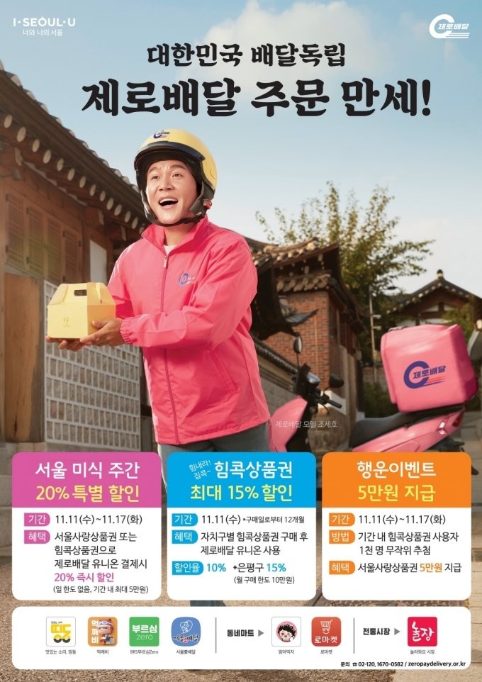 ‘힘콕상품권’ 발행에 맞춰 경품 이벤트도 진행한다. ‘제로배달 행사주간(11.11.~17.)’ 내 상품권을 구매하고 제로배달 유니온에서 결제한 이용자 1,000명을 무작위로 추첨해 서울사랑상품권 5만원을 지급할 예정이다.