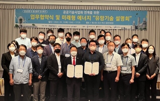 양측은 15일 부산 웨스틴조선호텔에서 강소특구 활성화 및 공동 발전을 위한 업무협약을 체결했다. 협약서는 각 강소특구의 기술핵심기관인 한국전기연구원(KERI, 원장 직무대행 김남균)과 울산과학기술원(UNIST, 총장 이용훈)이 주체가 되어 KERI 김종욱 전략정책본부장과 UNIST 권순용 산학협력단장이 서명했다.