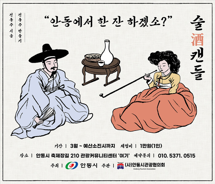 또한, 사계절 축제 기간을 비롯해 안동 주요 관광지인 도산서원, 하회마을 등에서 ‘찾아가는 전통주 체험프로그램’을 운영하며, 7월과 8월에는 서울이나 부산 등 유동 인구가 많은 지역에서 전통주 팝업스토어를 진행할 예정이다.