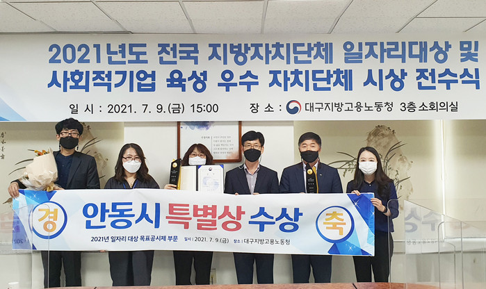 한편 안동시는 이날 대구지방고용노동청에서 열린 고용노동부 주관 ‘2021년도 사회적기업 육성 우수 자치단체’표창장을 수상해 경북 도내 기초 지자체 중 유일하게 우수상을 받았다.