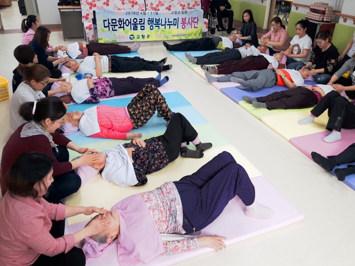 [로컬세계 김경락 기자]전북 고창군다문화가족지원센터 결혼이주여성으로 구성된 ‘다문화어울림 행복나누미 봉사단’ 단원들이 27일 고창군노인복지센터를 방문해 어르신들을 위한 피부마사지 봉사활동을 펼쳐 화제다.