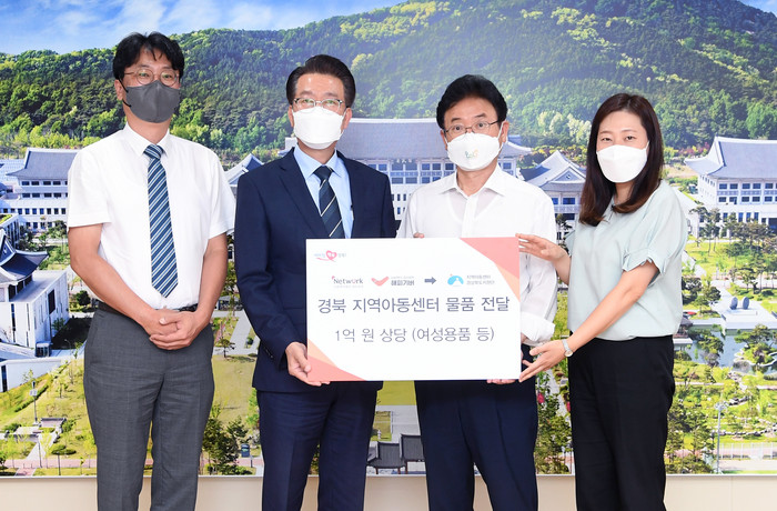 해피기버와 네트워크는 22일 오후 도청에서 지역아동센터 경북도지원단에 1억 원 상당의 여성용품과 속옷세트를 전달했으며 이 물품은 한부모 가정, 조손가정의 아동에게 전달된다.