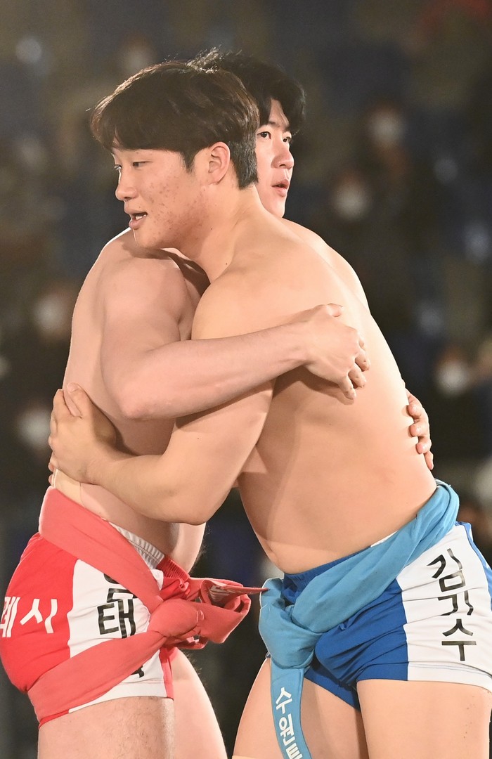 [로컬세계 김병민 기자]수원시청 씨름단 문준석·임태혁 장사가 수원체육관에서 열린 ‘2022 설날장사씨름대회’에서 태백·금강장사에 등극했다.
