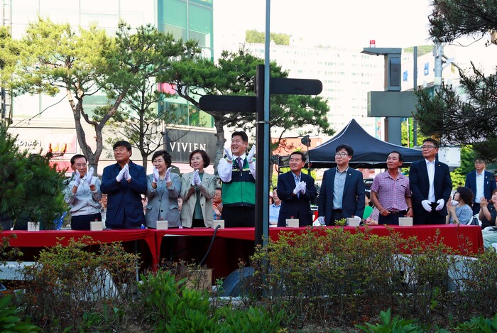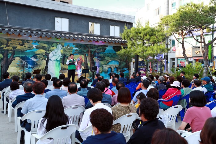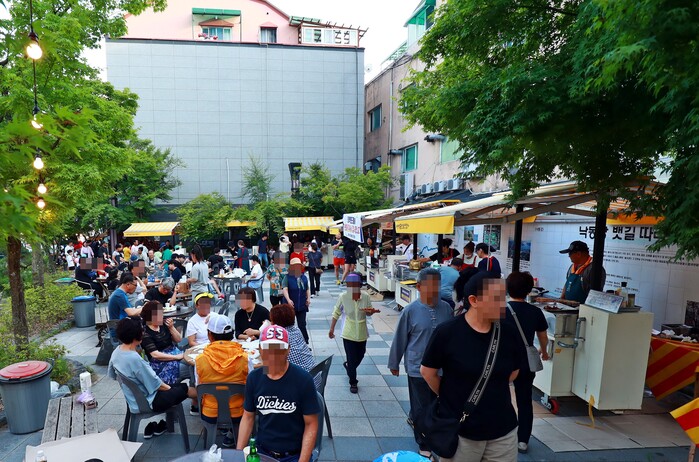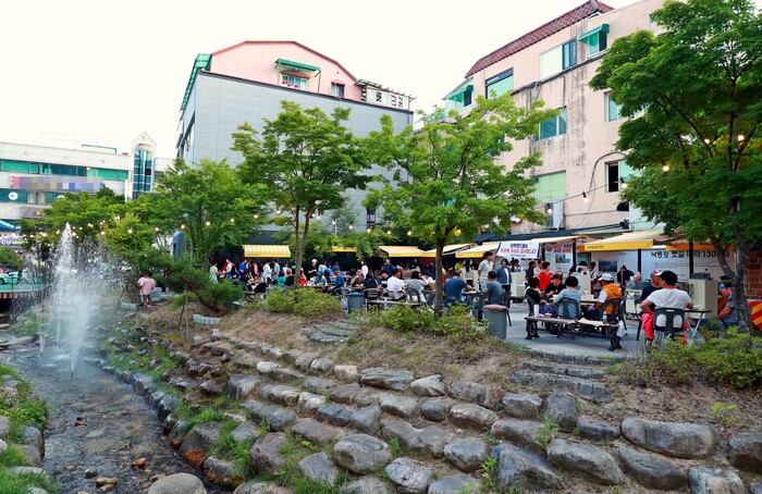 21일 열린 황부자 며느리 야시장 개장식 모습. 황부자 며느리 야시장은 낙동강발원지 물길복원길 일대에서 오는 10월 28일까지 매주 금, 토 오후 6시부터 오후 9시까지 열린다.(사진=태백시 제공)