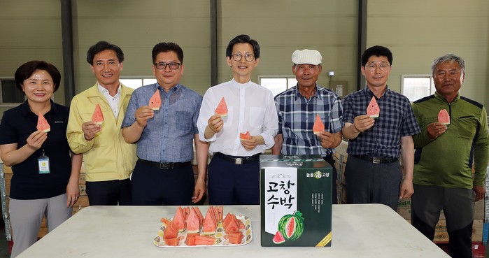 앞서 고창군은 지난 9일 대성농협 수박선별장(조합장 김민성)에서 ‘높을고창 수박’ 온라인 판매 첫 출하식을 열었다.