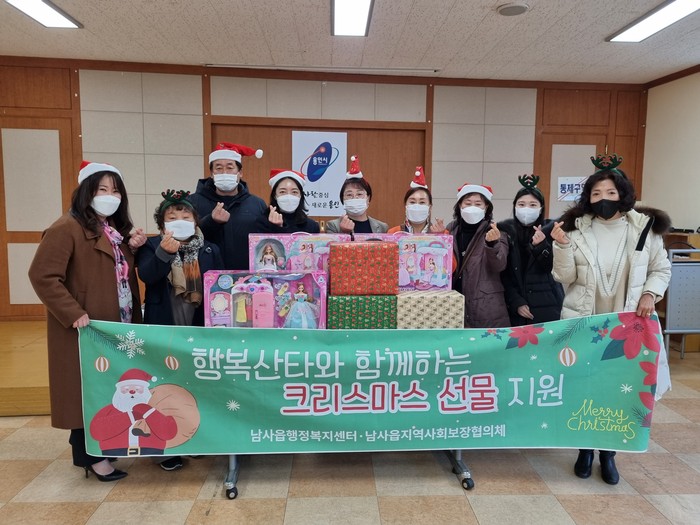 | ▲남사읍 지역사회보장협의체 관내 저소득 가정 미취학 아동 10명에게 크리스마스 선물 전달. 용인시 제공 |
