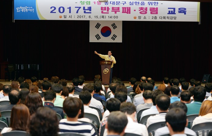 [로컬세계 임종환 기자]서울 동대문구는 청렴 일등 자치구 실현을 위해 15일 오후 2시 구청 다목적강당에서 소속 공무원과 시설관리공단 직원을 대상으로 반부패·청렴 교육을 실시했다.