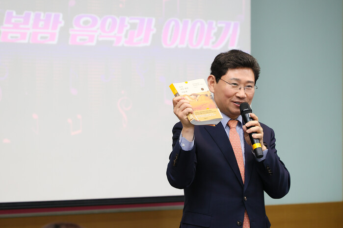 [로컬세계=김병민 기자]경기 용인특례시는 2024년 도서관의 날·도서관 주간 기념행사로 12일 기흥도서관 시청각실에서 정여울 작가, 예술 커뮤니티 아르케컬처(archeculture)와 함께 '봄밤 음악과 이야기' 북콘서트를 열었다.