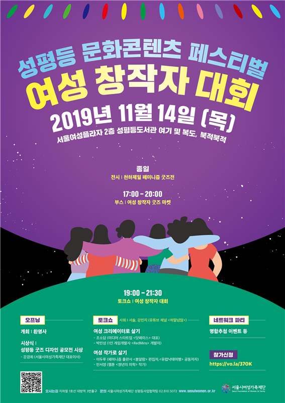 강경희 서울시여성가족재단 대표이사는 “이번 페스티벌이 성평등 문화 콘텐츠의 중요성과 여성 창작자들의 현실에 대한 시민의 공감을 이끌어내고 여성 창작자들이 서로 연대하고 서로 지지하는 계기가 되길 바란다”고 말했다.
