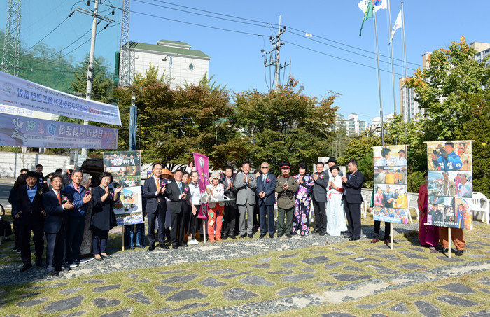 ▲제4회 답십리영화페스티벌에서 영화 촬영소길을 선포하고 관계자들이 함께 기념촬영을 하고 있다. |