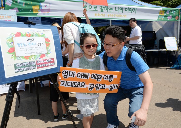 ▲동대문구 북 페스티벌 문장만들기 체험행사 찾은 아빠와 딸. |