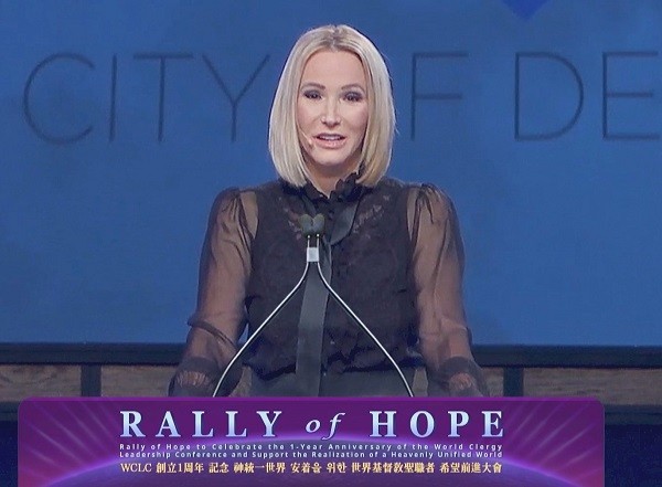 이날 미국 트럼프 정부 복음주의자문위원장인 폴라 화이트(Paula White) 목사는 기조연설을 통해 “성직자는 하나님의 사랑권 속에 굳게 서서 하나님의 사랑을 널리 전하고 본질을 가르치며 사랑을 실천해 전 세계 국가와 국민을 하나님 품으로 인도해야 한다”면서, “예수님께서 ‘나와 함께 아니하는 자는 나를 반대하는 자요, 나와 함께 모으지 아니하는 자는 헤치는 자니라’고 말씀하셨듯이 우리 모두 한학자 총재께서 추구하는 항구적 평화세계인 ‘신통일세계 안착 운동’에 적극 동참해 미국의 화합과 한반도 평화통일을 위해 함께 기도하자”라고 강조했다.