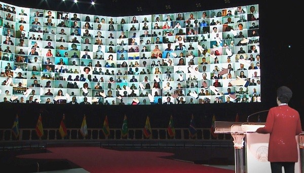 미국 뉴욕과 한국 가평 청심평화월드센터에서 이원중계 방식으로 진행된 이날 행사는 전세계 참석자들을 위해 9개국 언어로 동시통역해 진행됐다. 비대면 온라인 채널과 국가별 방송 매체를 통해 수십만명의 세계인이 동참했다.