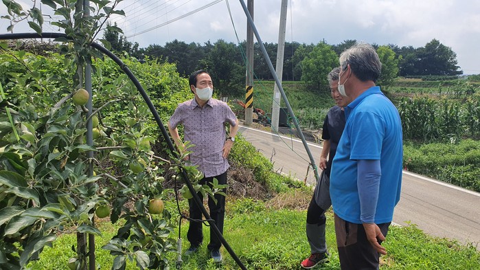 이날 김주수 군수는 김춘안 농협중앙회 경북지역본부장과 함께 피해를 확인하고 피해복구 대책 등을 점검했으며, 피해 농가를 위로하고 재해 복구에 대한 신속한 지원대책을 지시했다.