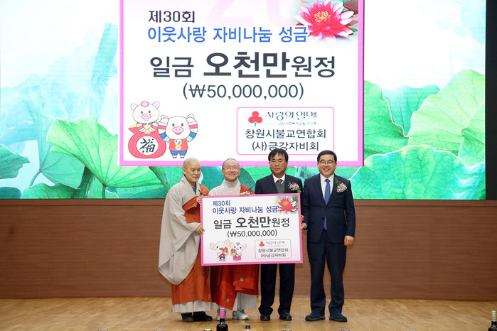 허성무 시장은 “창원시 불교연합회에서 지난 29년간 어려운 이웃을 위해 부처님의 자비를 실천해주셔서 감사드린다”며 “통합 10년, 미래로 가는 대도약과 대혁신의 2020년을 만들기 위해 최선을 다하겠다”고 말했다.