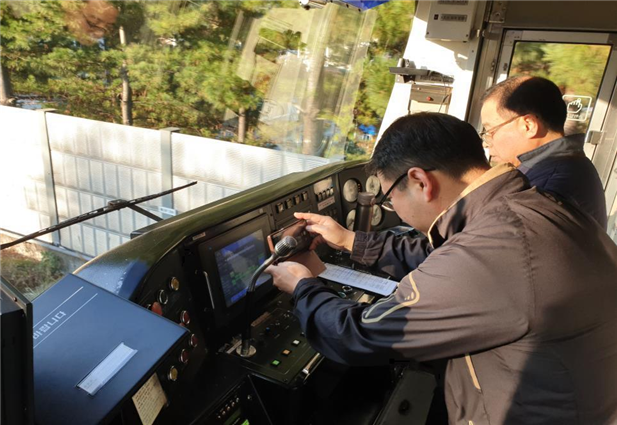 ▲신내행 열차 운전에 지장이 없도록 시운전을 진행 중이다. |