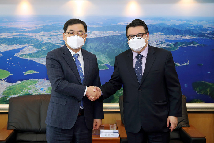 [로컬세계 권인진 기자]경남 창원시는 22일 오후 2시 접견실에서 허성무 시장이 후안 카를로스 카이사 로세로 대사와 만나 올해 양국 수교 60주년을 축하하며 전반적인 국제협력 방안을 논의했다고 밝혔다.