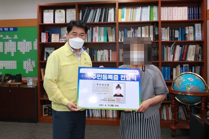 서울 관악구는 17일, 15년 만에 신원을 회복한 A씨에게 다시 되찾은 주민등록증을 전달하는 축하 자리를 마련했다.
