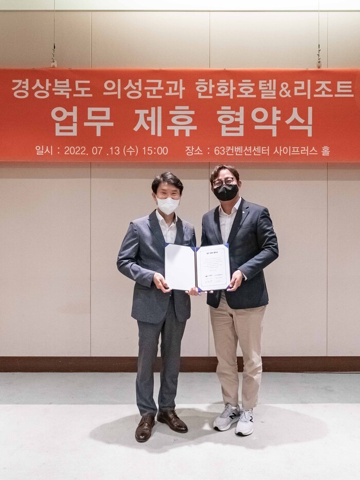 [로컬세계=박상진 기자]경북 의성군(군수 김주수)은 지난 13일 63빌딩 사이프러스 홀에서 한화호텔앤드리조트와 의성군 사회적경제기업 제품의 우수함을 알리고 판로를 확대하는 협약식(MOU)을 체결했다고 18일 밝혔다.