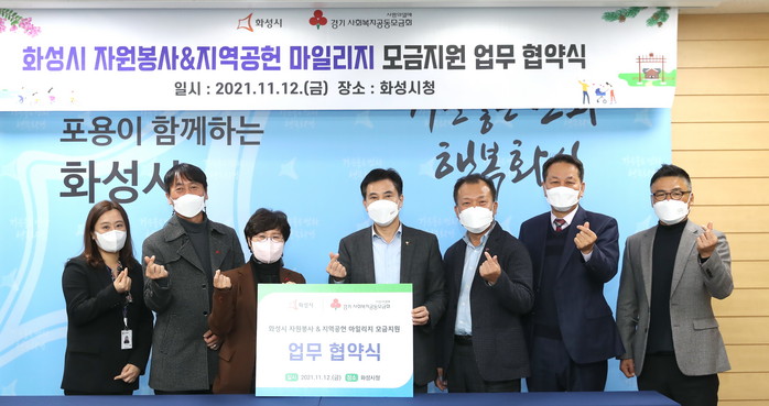 | ▲자원봉사&지역공헌 마일리지 모금지원 업무협약식. 화성시 제공 |