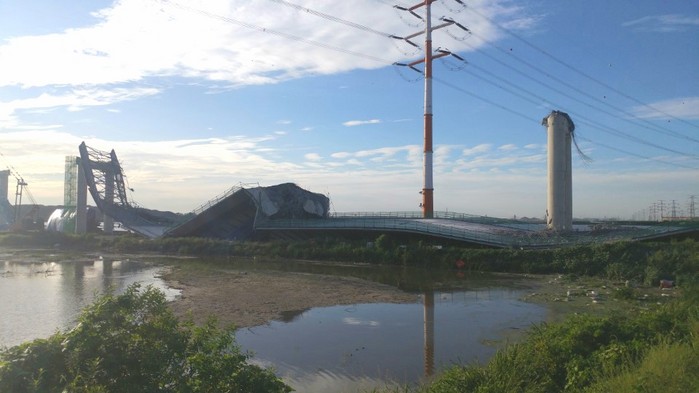 이날 사고는 건설 근로자들이 교각 교량 상판 연결작업을 마치고 휴식 중 공사교각구간 길이 1.3km중 240m가 붕괴된 것으로 전해졌다.